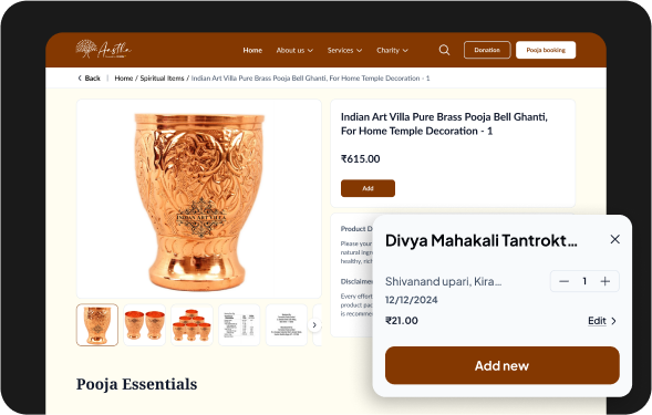 Aastha helps spiritual organisations offer services, accept donations, manage events, and share faith online — while preserving personal connection.