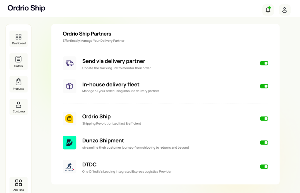 Shipping shouldn’t mean logging into five dashboards or negotiating endless rates. Ordrio Ship brings everything together in a single panel -saving you time, money, and effort, while providing your customers with a seamless delivery experience.