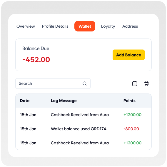 Customers can add funds in advance for faster, one-tap checkouts. Every transaction is logged, with downloadable statements.