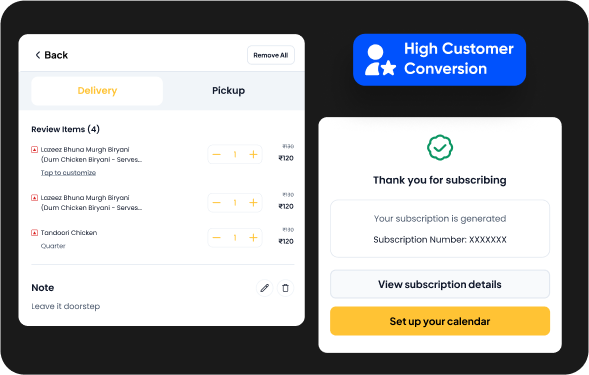 - Mobile-first ordering for dine-in, takeaway, and delivery.