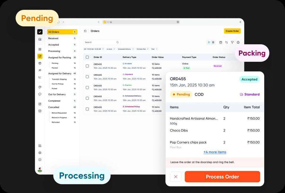 Set delivery zones by pin code, assign orders by time, location or delivery partner. Know where your order is, from your store to the customer’s doorstep.