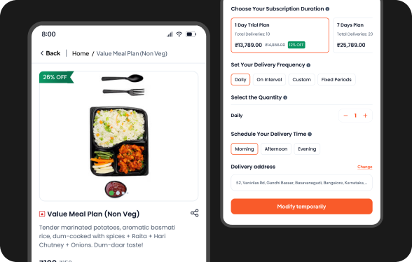 Run your own branded tiffin service with smart scheduling and flexible meal plans.