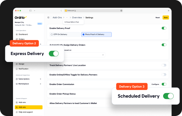 Connect your in-house fleet, partner with Vayu, or use Ordrio Ship to manage couriers — all from a single system.