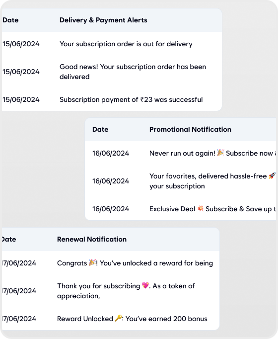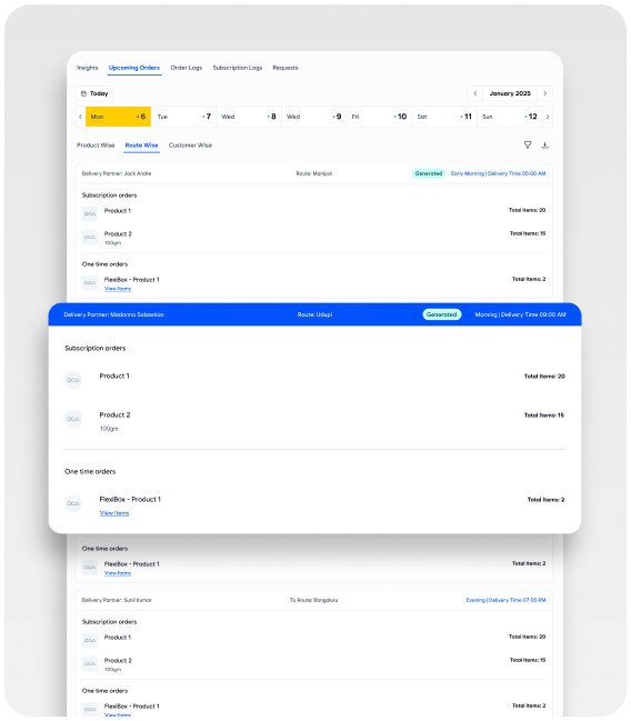 Manage Recurring Orders Seamlessly With Powerful Subscription Tools Built For Businesses Offering Daily, Weekly, Or Custom Frequency Deliveries. From Bottled Water And Groceries To Meals And Dairy, Our Subscription Engine Is Flexible, Automated, And Designed To Keep Customers Loyal.