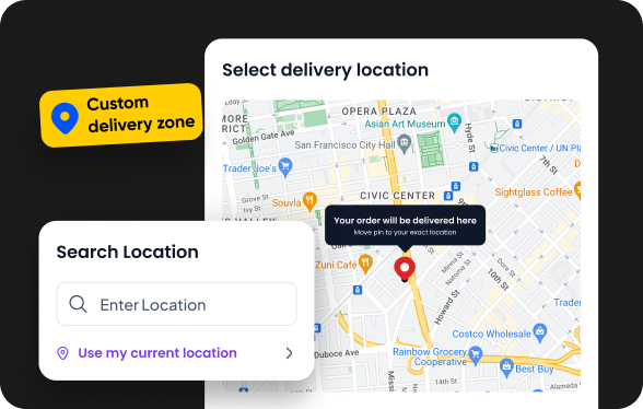 - Set your delivery zones, time slots, and kitchen-specific rules. & Use your own riders, third-party fleets, or both.
